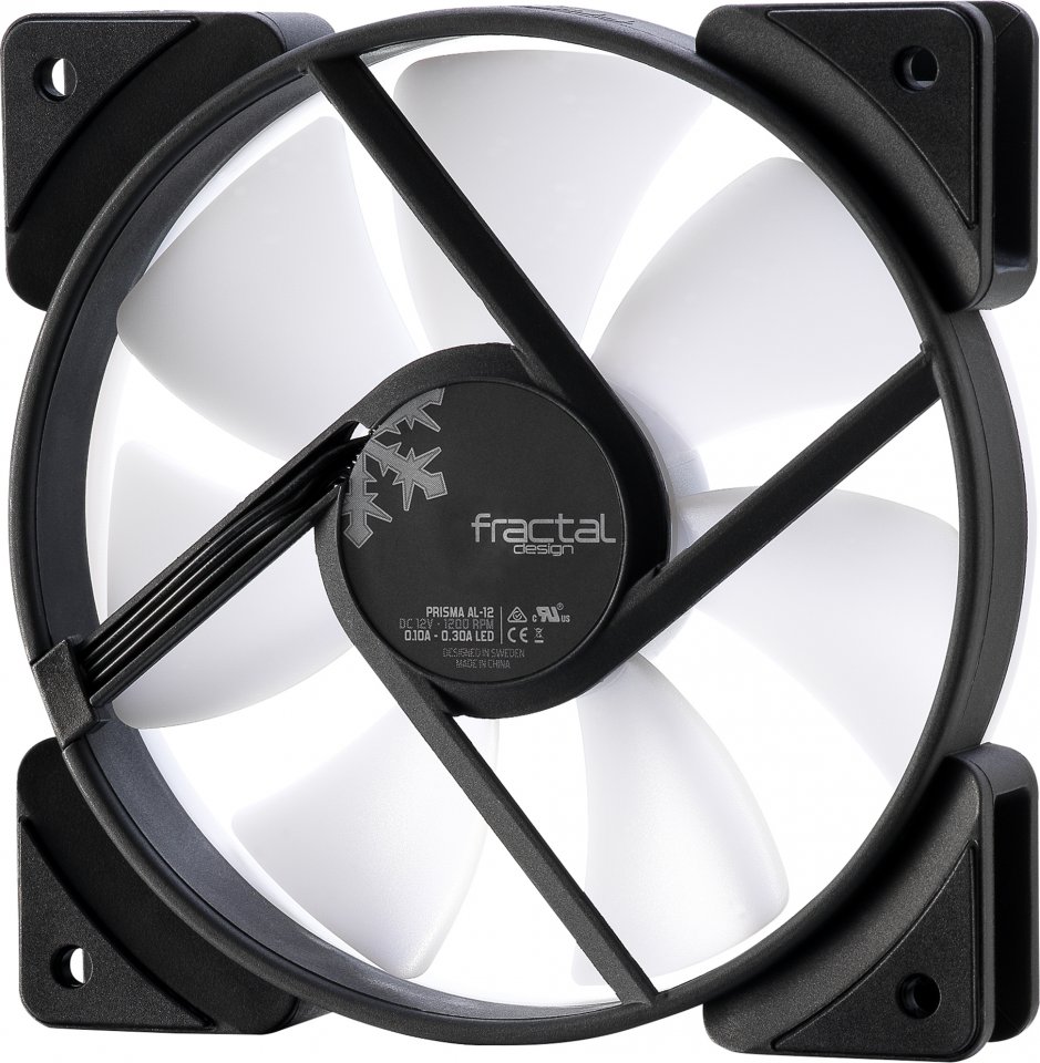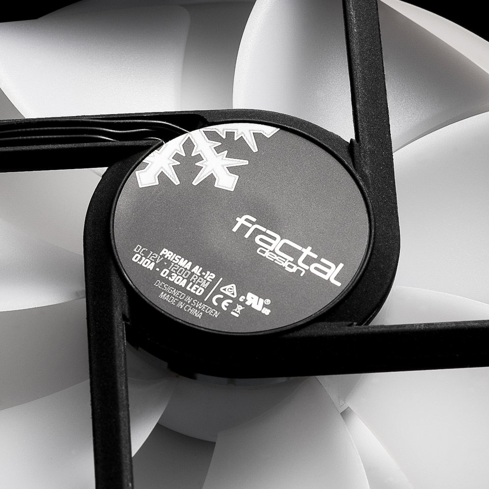 Fractal Design Prisma AL -sarjan ARGB -tuulettimet pistävät kokoonpanosi todella loistamaan. Kuusi napaan asennettua RGB-LEDiä toimivat sopusoinnussa valkoisen, puoliksi läpinäkyvän ulkorenkaan sekä tuulettimen siipien kanssa, tuottaen kauniisti tasaisen hehkun tuulettimen koko pinnalle.