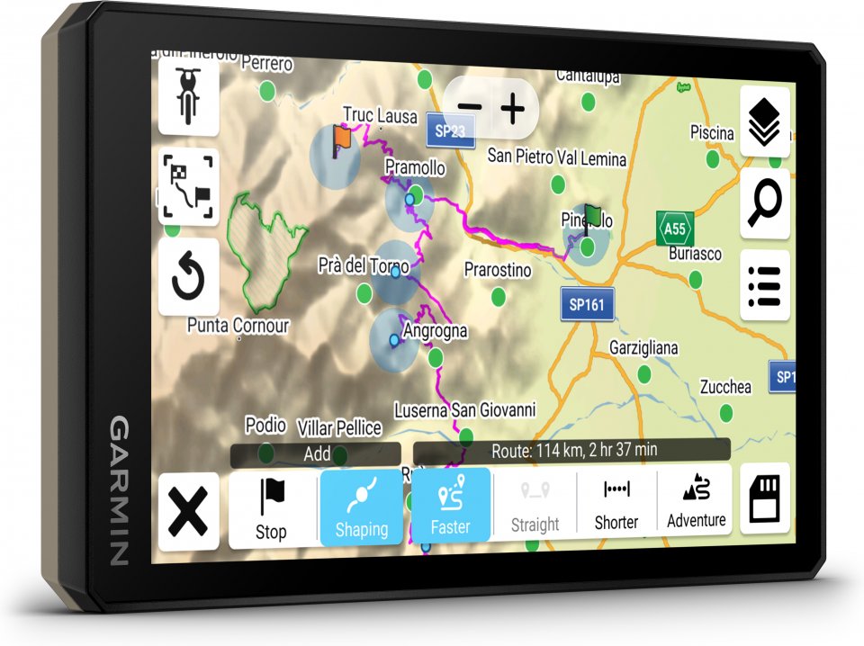 Erikseen myytävien ohjaustangon säätimien avulla satelliittinavigaattoria on helppo käyttää niin, ettei käsiä tarvitse irrottaa moottorikelkan, moottoripyörän tai mönkijän kädensijoista.