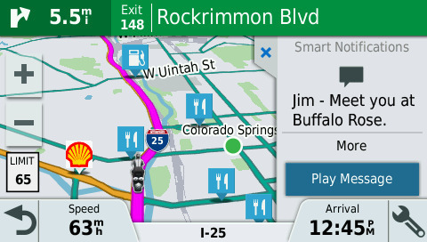 Mitä edessäpäin tapahtuu? zūmo 396LMT-S -laitteella saat käyttöösi reaaliaikaiset liikenne- ja säätiedot Smartphone Link -sovelluksen kautta. Tämä maksuton mobiilisovellus yhdistää zūmon iPhone- tai Android -älypuhelimeen. Voit pitää kartat ja ohjelmistot helposti ajan tasalla, koska zūmo 396LMT-S -navigaattorissa on sisäinen Wi-Fi-yhteys. Kun uusi päivitys on saatavilla ja olet Wi-Fi-verkossa, saat automaattisesti näyttöön ilmoituksen, että voit päivittää koskettamalla painiketta. zūmo 396LMT-S parantaa tietoisuuttasi ajoympäristöstä ja ajoturvallisuuttasi antamalla hälytyksiä esimerkiksi edessäpäin olevista jyrkistä mutkista, nopeusrajoituksen muutoksista, tasoristeyksistä ja ylityspaikoista eläimille sekä koulualueista. Saat myös ilmoituksen, jos aiot ajaa väärään suuntaan yksisuuntaisella kadulla. Saat hälytyksen myös lähellä olevista liikennevalo- ja valvontakameroista. Pitkillä ajomatkoilla väsymysvaroitus7 ehdottaa taukoja ja mahdollisia levähdyspaikkoja.