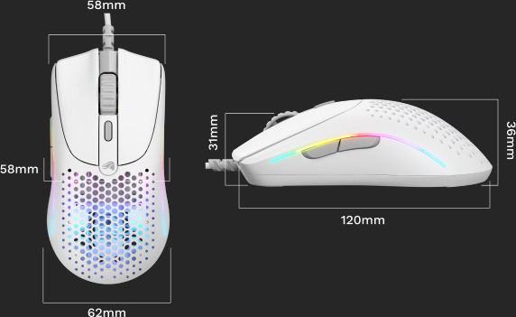 • Ergonominen muotoilu: Symmetrinen, oikeakätinen hiiri sopii pienille ja keskikokoisille käsille.
