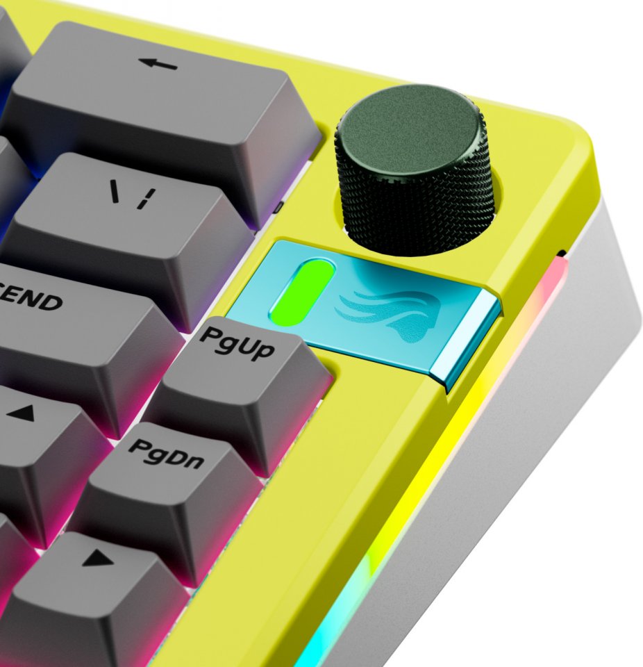 Kustomoi GMMK 3 -näppäimistö vaihdettavilla ja ohjelmoitavilla vieritysnupeilla, jossa on naarmuuntumista estävä mattapintainen viimeistely ja mukavan otteen tarjoavat teksturoidut sivut. Nuppi on helppo asentaa, vedä alkuperäinen irti ja paina uusi nuppi paikoilleen. Saatavilla on useita värivaihtoehtoja.