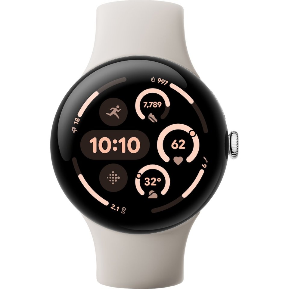 Google Pixel Watch 3 WiFi -älykello, 45 mm, Porcelain / Polished Silver