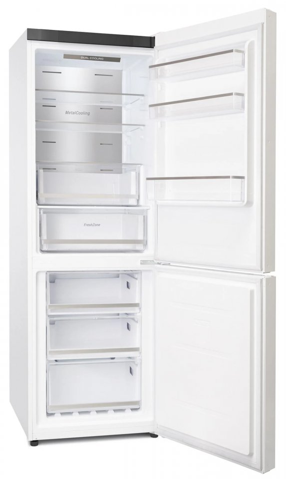 DualCooling-järjestelmä huolehtii, että jääkaappi ja pakastin jäähdytetään erikseen. Näin pakastimesta ei siirry kuiva ilmaa tai hajuja jääkaappiin, mikä auttaa pitämään ruoan tuoreempana pidempään. Full NoFrost -ilmastointi estää jään muodostumisen, joten sinun ei tarvitse huolehtia jääkaapin sulatuksesta.