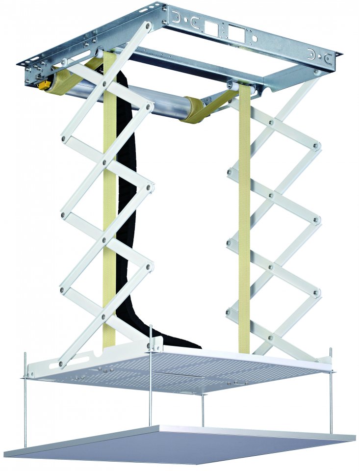 Rakenteeltaan erittäin ohuet, mutta tukevat mekanismit mahdollistavat hissijärjestelmän asennuksen myös ahtaammissa tiloissa. Tehokas moottori sekä tukeva mekanismi huolehtivat että projektori asettuu tasaisesti ja tarkasti aina sille määritellylle korkeudelle. Kaapelit projektorille viedään suojatusti sekä turvallisesti näille varattua saranoitua johtokourua pitkin. Katselun jälkeen hissin hiljainen moottori vetää projektorin rauhallisesti suojaan esim. Välikattoon. Projektorihissi liitetään sähköverkkoon helposti pistotulpalla, hallinta sähköjohtoon liitetyn ohjauskeskuksen painikkeilta tai RF kaukosäätimeltä. Halutessasi voit lisätä käyttömukavuutta ohjaamalla projektorihissiä suoraan, esim. projektori, vahvistin tai Blu-ray soitin käynnistettäessä, grandviewltä lisävarusteena saatavilla olevien “Power relay trigger set" sekä “Wireless trigger set” tarvikkeiden avustuksella.