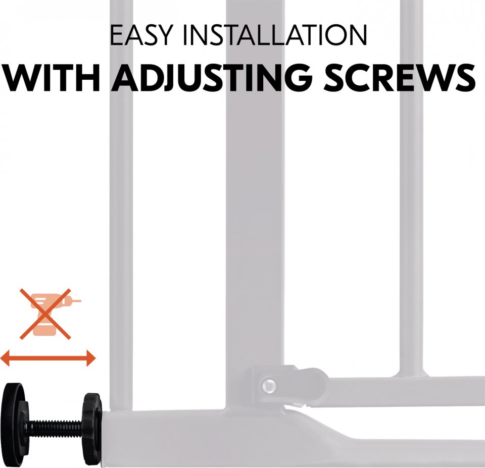 Hauck Clear Step 2 -turvaportti kiinnitetään pingottamalla karmien tai porraspuolien väliin eikä ruuveja tarvita, jonka ansiosta seinään ei jää kiinnityksestä jälkiä.