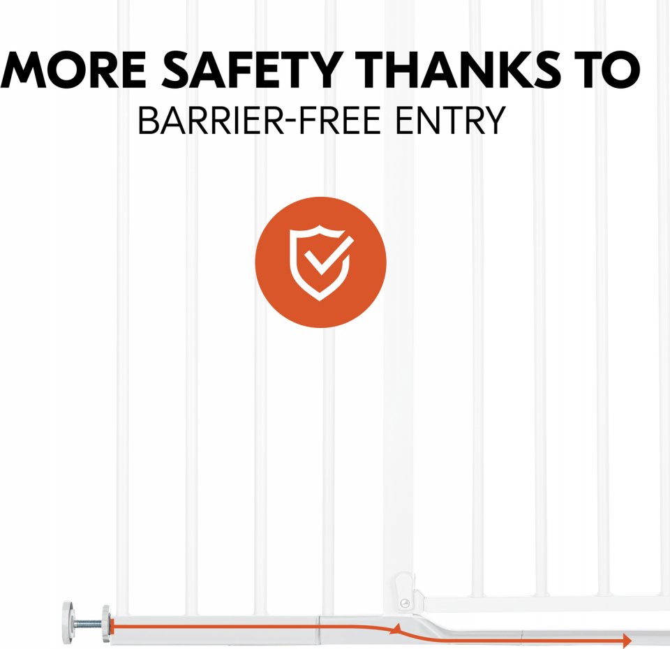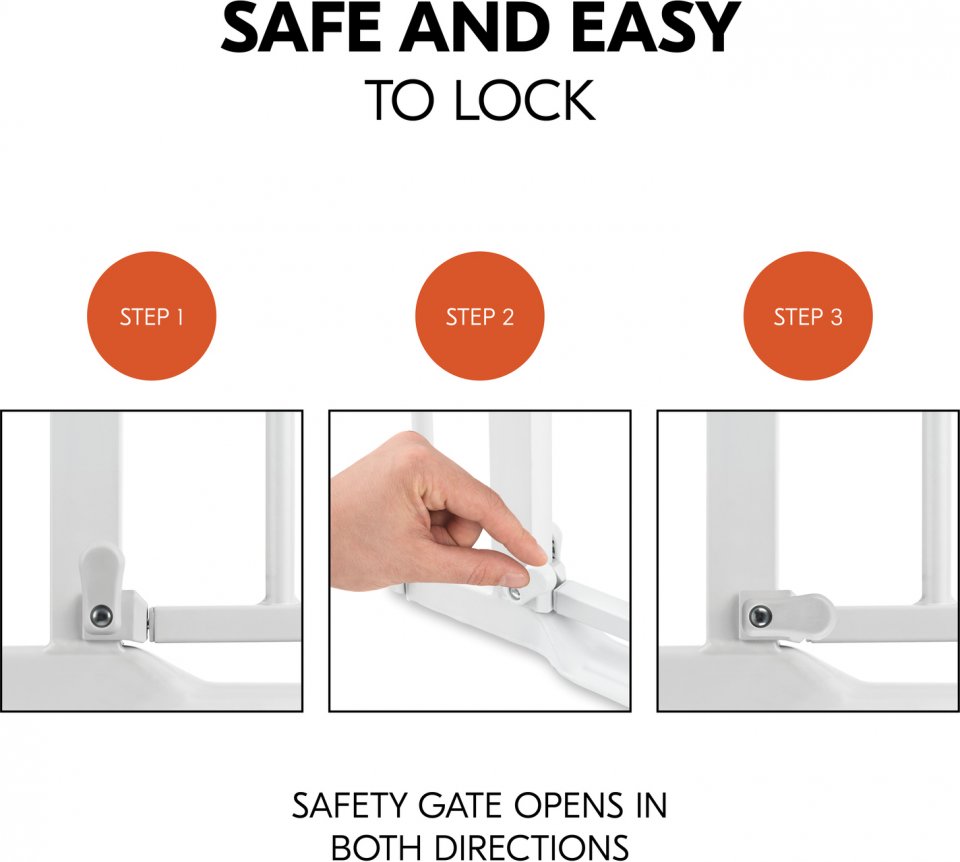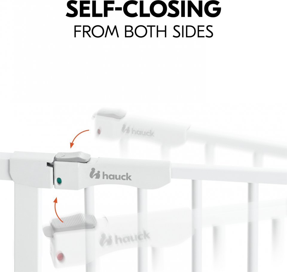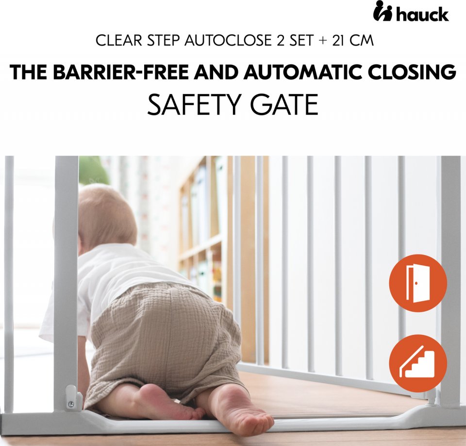 Turvallisuutta lapsiperheeseen Hauck Clear Step Autoclose 2 -turvaportin avulla. Lähes kynnyksettömästä portista on helppo astella myös pienillä jaloilla kompastumatta. Nopeasti asennettavalla turvaportilla estät liikkumisen huoneisiin tai portaisiin. Turvaportissa on itsestään sulkeutuva ovilukko lisäturvallisuutta varten. Portti avautuu yhdellä kädellä helposti molempiin suuntiin, mutta integroidulla hakasella on mahdollista estää avaaminen vain toiselta puolta. Mahdollisuus pidentää enintään kahdella jatkopalalla (1 kpl 21 cm jatkopala sisältyy pakkaukseen). Materiaalina kestävä teräs. Voidaan asentaa Y-palojen (lisävaruste) avulla myös portaikkojen pyöreisiin puoliin.