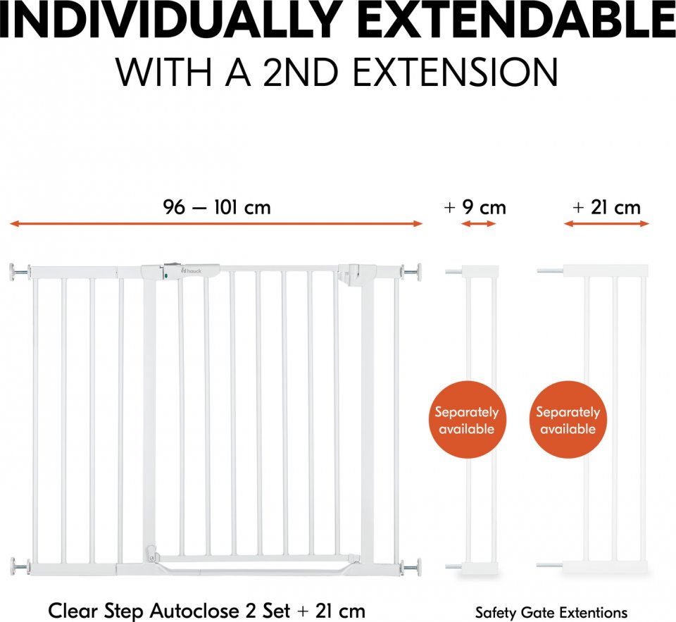 Hauck Clear Step Autoclose 2 -turvaportti, 75 – 80 cm, valkoinen + 21 cm jatkopala