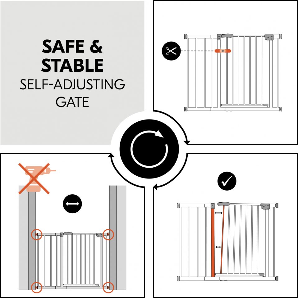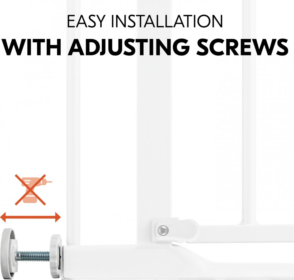 Hauck Clear Step Autoclose -turvaportti kiinnitetään pingottamalla karmien tai porraspuolien väliin eikä ruuveja tarvita, jonka ansiosta seinään ei jää kiinnityksestä jälkiä.