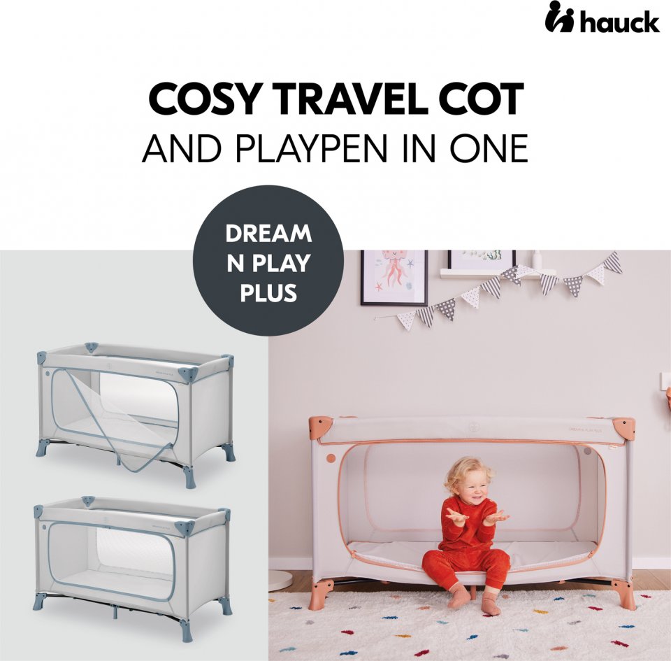 Kannettava Hauck Dream N Play Plus -matkasänky on täydellinen ratkaisu paljon matkustaville lapsiperheille. Kätevä avausmekanismi nopeuttaa sängyn asettamista käyttövalmiiksi myös vähän ennen nukkumaan menoa. Avattuna matkasängyn sisäpinta-ala on standardi 120 x 60 cm, mikä helpottaa esimerkiksi erillisen taittopatjan hankintaa. Sängyn verkkopohjaiset seinämät mahdollistavat pienokaisen tarkkailun päiväunilla, sekä pitävän hänen olonsa mahdollisimman miellyttävänä myös kesähelteillä. Taitettuna kasaan sänky vie tilaa vain 76 x 24 x 23 cm.