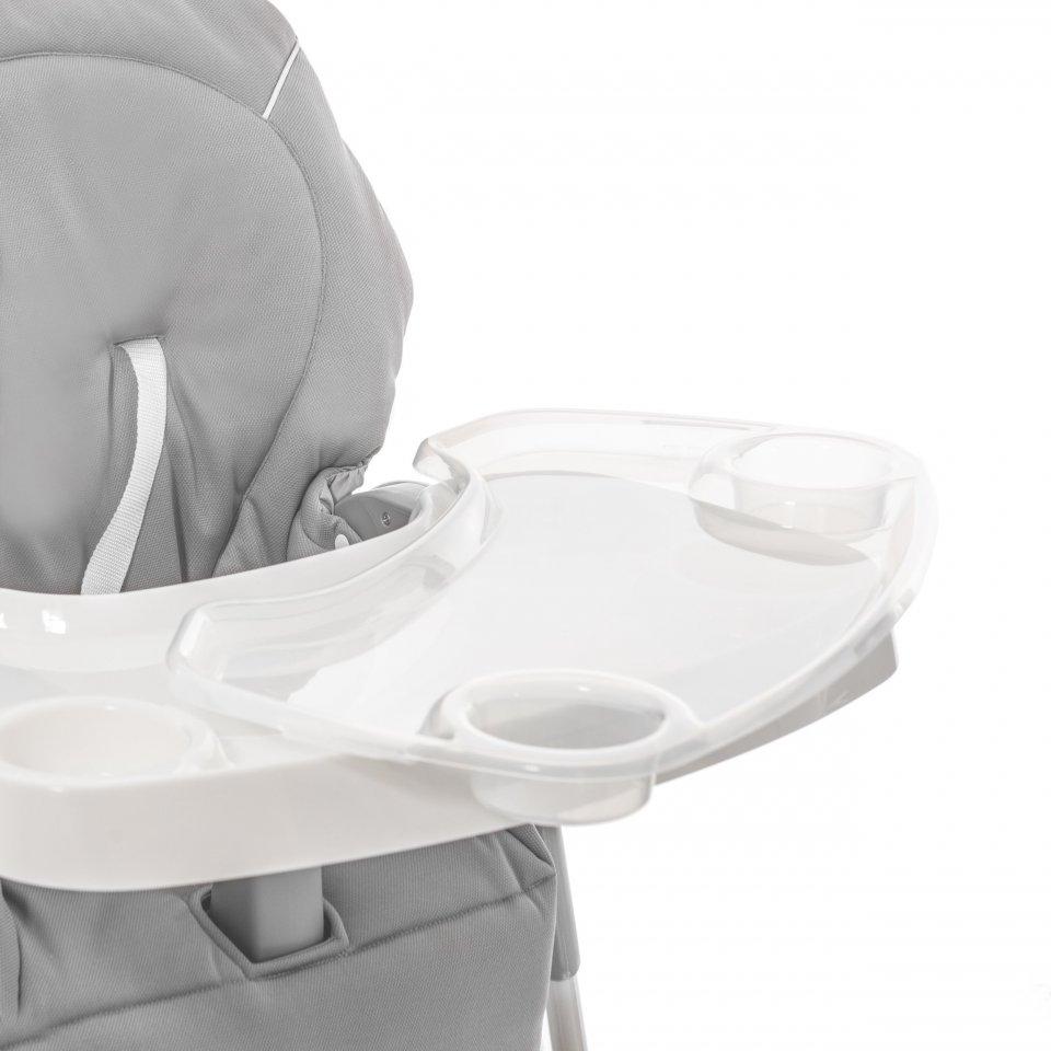 • Syöttötuolissa on iso tarjotin, jossa on korkeat reunat ja juomalle oma syvennys.