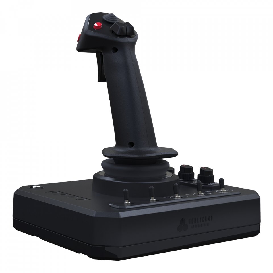Joystickissa on 1 POV-kytkin, 4 toimintopainiketta, 2 keinukytkintä, tarkkuusliipaisin sekä vasen/oikea kierto (twist) sivuperäsimen ohjaukseen.