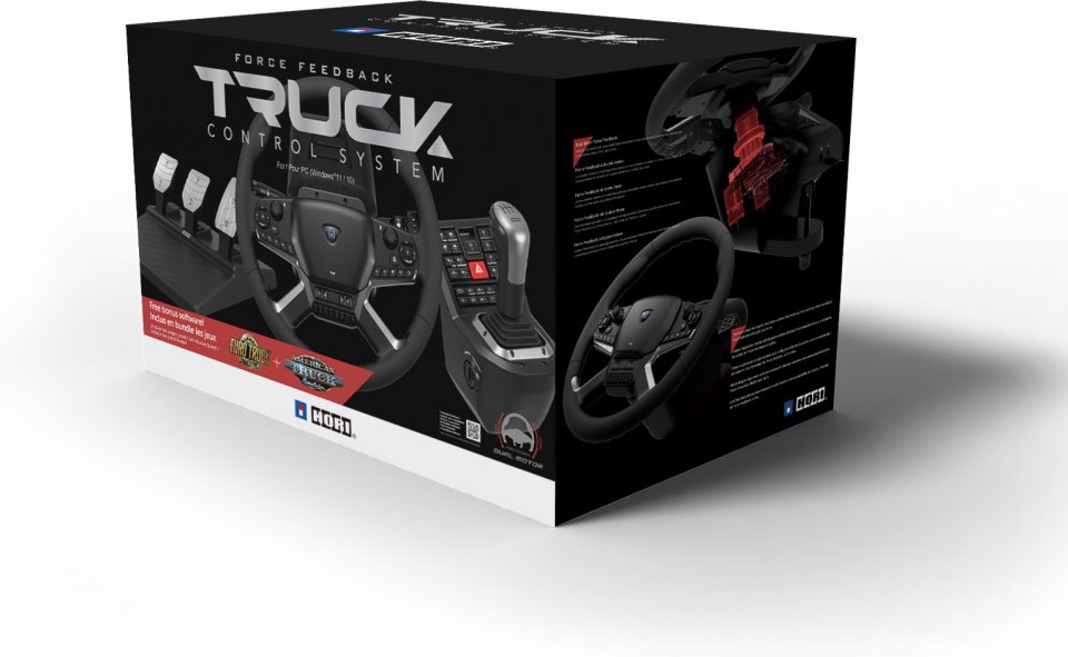 Hori Force Feedback Truck Control System sisältää suurikokoisen ratin, erillisen vaihdekeppiyksikön useilla lisäpainikkeilla sekä polkimet. Ratti on varustettu kauttaaltaan hyödyllisillä painikkeilla ja tuulilasinpyyhkimille sekä vilkulle on omat vipunsa.