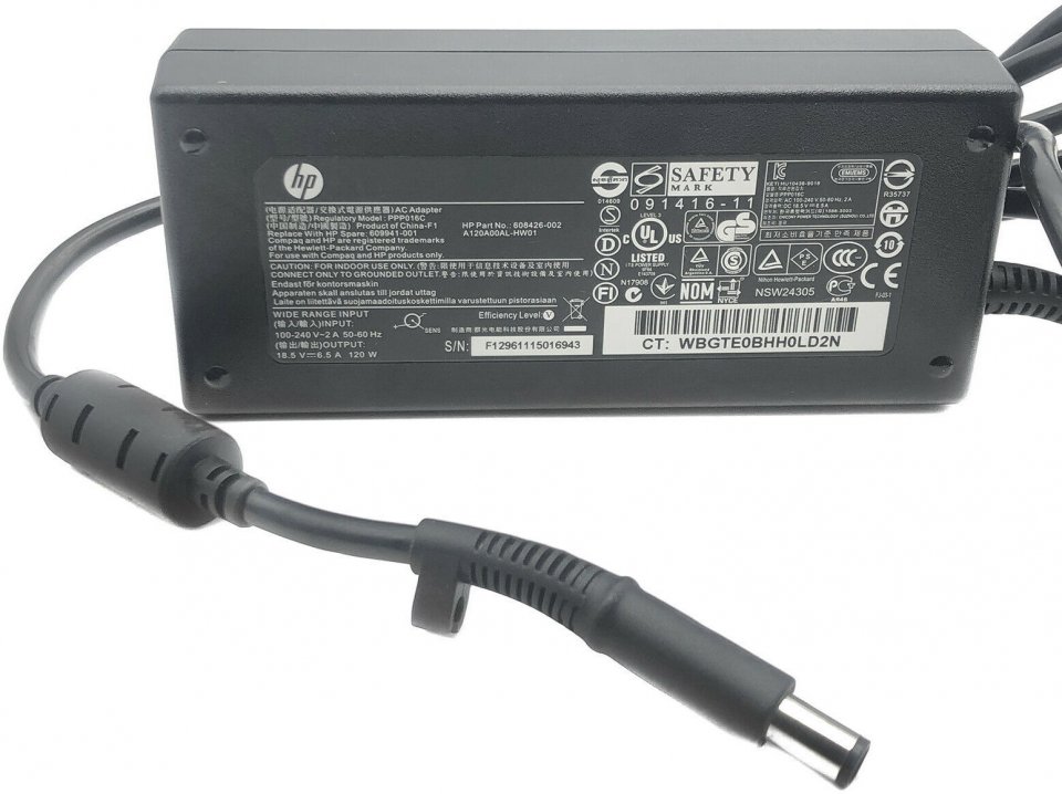 HP 120 W -virtalähde, joka sopii lähes kaikille HP-kannettaville, joissa 7,4 mm Smart -latausliitäntä.
