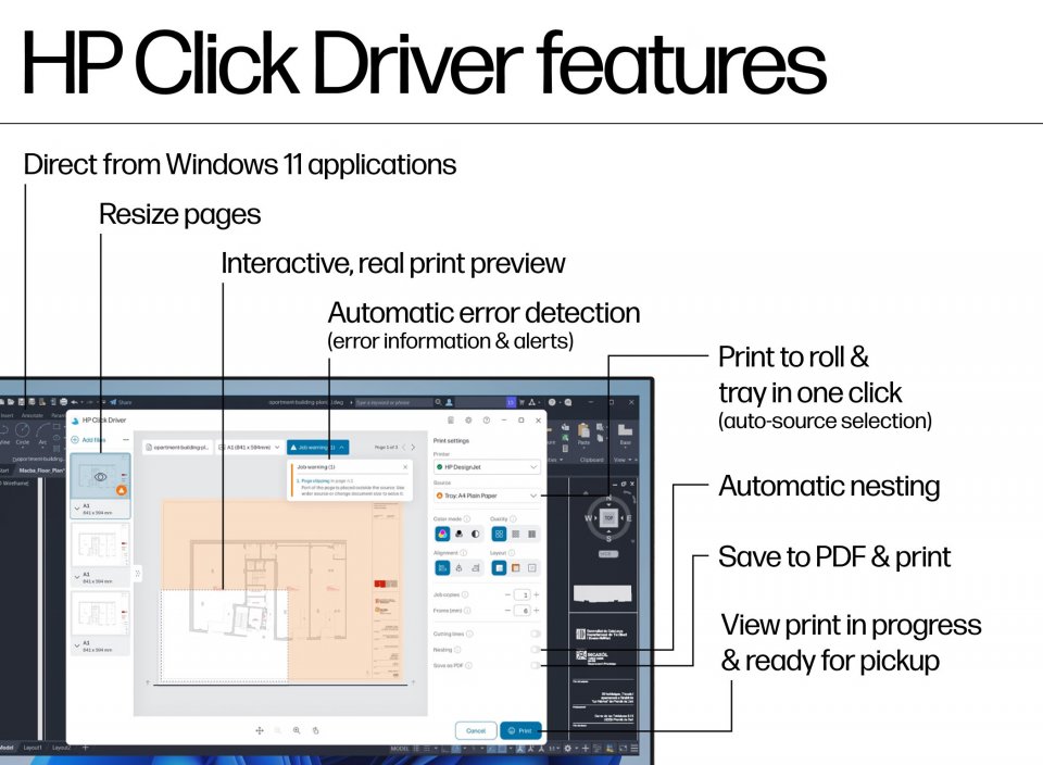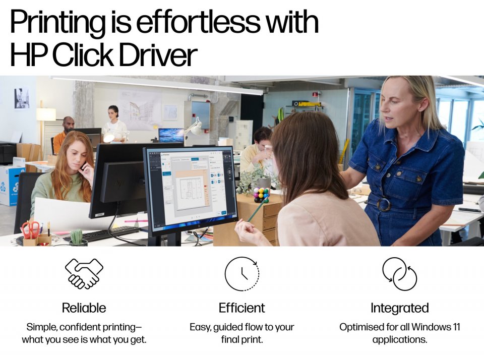 • Niputettu ohjelmisto: HP Click Driver Windows 11:lle, HP Click App Windowsille ja Macille, HP App Windowsille, Macille, Androidille ja iOS:lle, PartnerLink