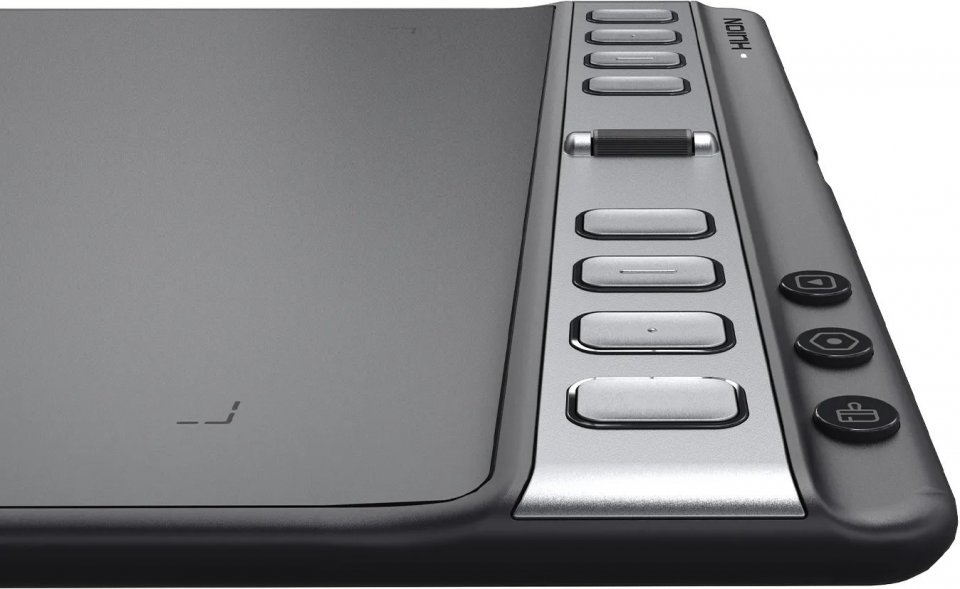 Painikkeilla on paljon helpompi navigoida palkin korkeuden (2 mm korkeampi kuin piirustuspinta), painikkeiden ja palkin värieron sekä painikkeiden muotoilun vuoksi. Lisäksi Inspiroy 2 sisältää erittäin kätevän vierityspyörän, jonka herkkyyttä voi säätää ohjaimessa hiiren rullan tapaan.