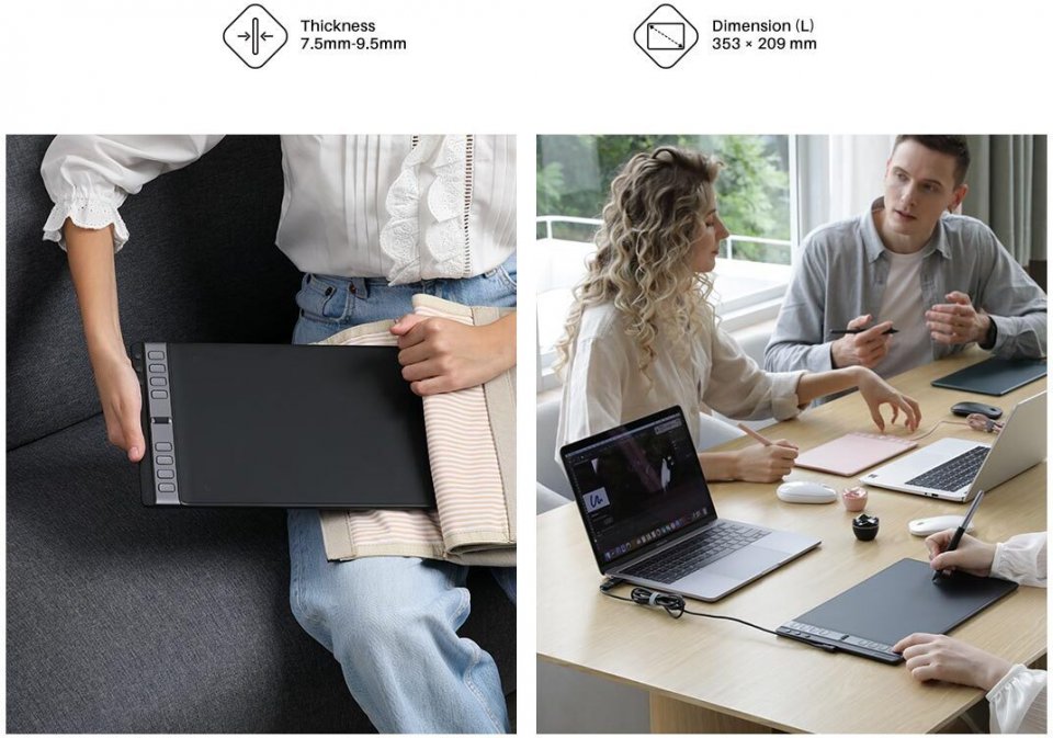 Inspiroy 2 -mallissa on kavennettu leveys ja kokonaispaksuus alle 1 cm, joten voit helposti pakata tabletin reppuun piirtämistä varten tien päällä. Vielä tärkeämpää on, että ohuempi runko vähentää ranteen epämukavuutta luomisen aikana.