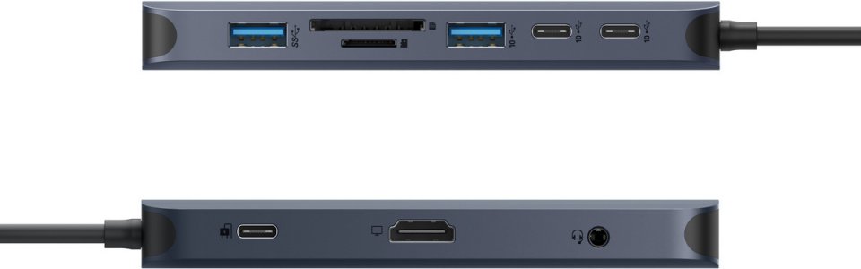 HyperDrive Next USB-C-Hubi, 10 porttia, muistikortinlukijat, keskiyön sininen
