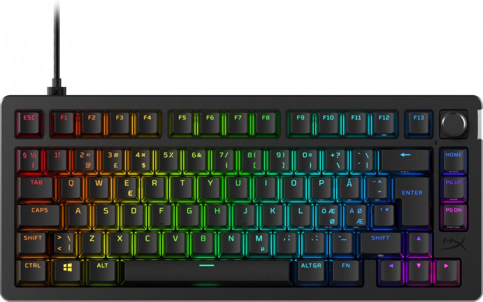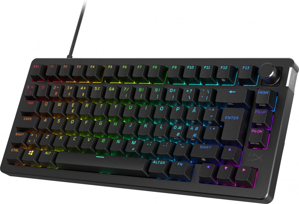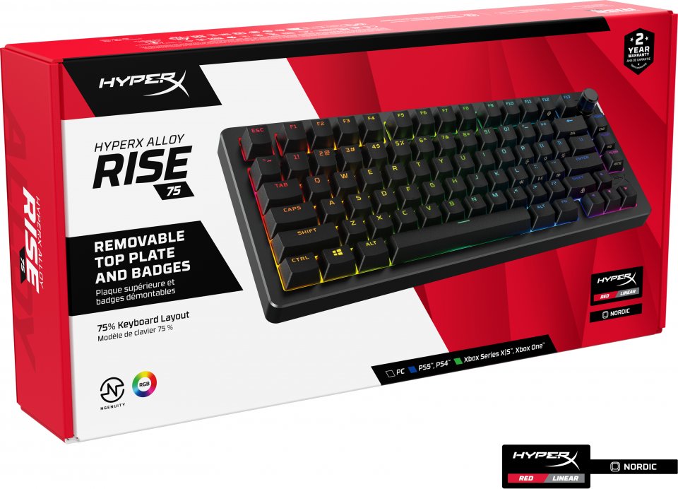 HyperX Alloy Rise 75 vie räätälöinnin uudelle tasolle maailman mukautettavimmalla markkinoilla olevalla työkalutta mukautettavalla pelinäppäimistöllä. Voit vaihtaa lennosta näppäinkytkimet, mutta myös magneettiset ylälevyt ja näppäinkoristeet sekä mukauttaa muita ominaisuuksia. 75 %:n muotokerroin on loistava tasapaino kompaktin ja toimivuuden välillä, sillä se tarjoaa erilliset nuolinäppäimet, navigointinäppäimet ja F-näppäimet.
