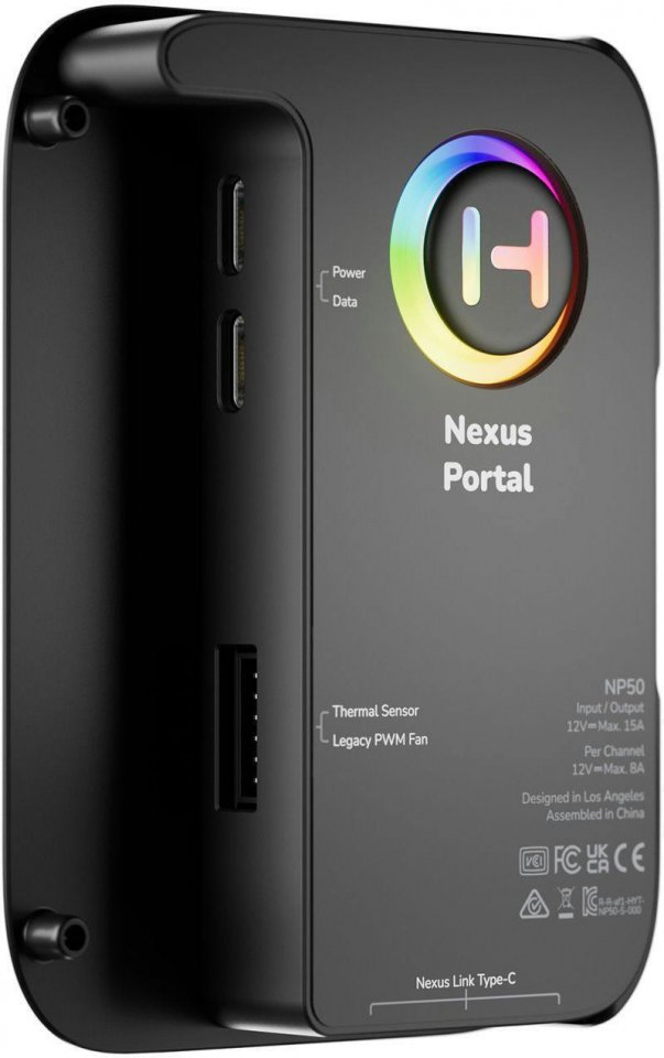 Pakkaukseen sisältyy Nexus Portal NP50 -hubi, joka mahdollistaa valonauhojen liittämisen Nexus Link Type-C -liitännän kautta. NP50-hubi tarjoaa virtaa jopa 249 ARGB-ledille yhdellä kanavalla. Sen helppo asennus 2,5″ -asennuspaikkaan piilottaa hubin, vapauttaa tilaa ja edistää siistiä kaapelinhallintaa.