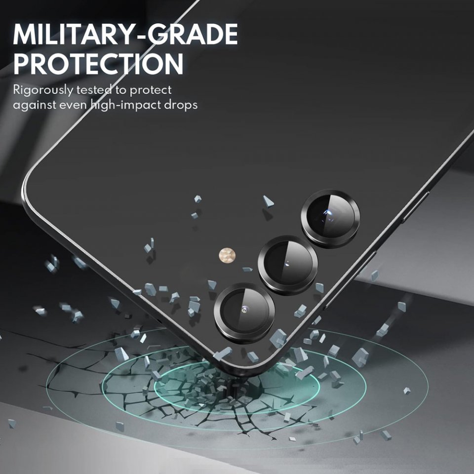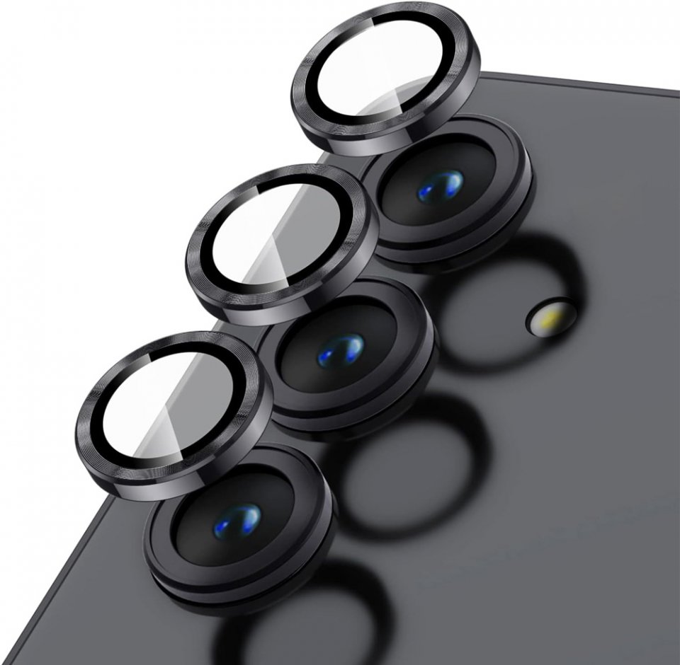 Suojaa Samsung Galaxy S24+ -puhelimen kameran linssit naarmuilta ja vauriolta näillä ylellisillä alumiinirunkoisilla suojilla säilyttäen alkuperäisen muotoilun.