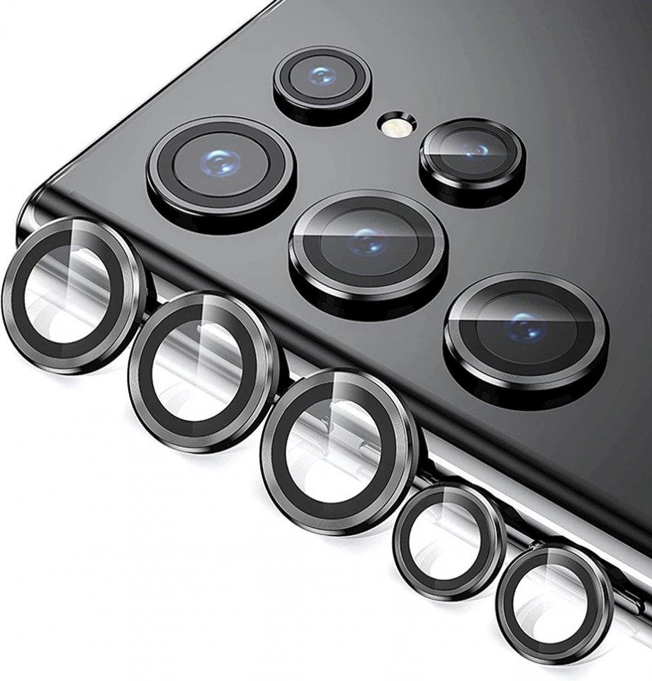 Suojaa Samsung Galaxy S24 Ultra -puhelimen kameran linssit naarmuilta ja vauriolta näillä ylellisillä alumiinirunkoisilla suojilla säilyttäen alkuperäisen muotoilun.