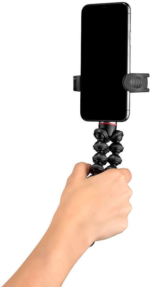 Joby GripTight Smart -älypuhelinpidikkeellä saat kiinnitettyä puhelimesi kamerajalustaan, jossa on 1/4″ jalustakierre.
