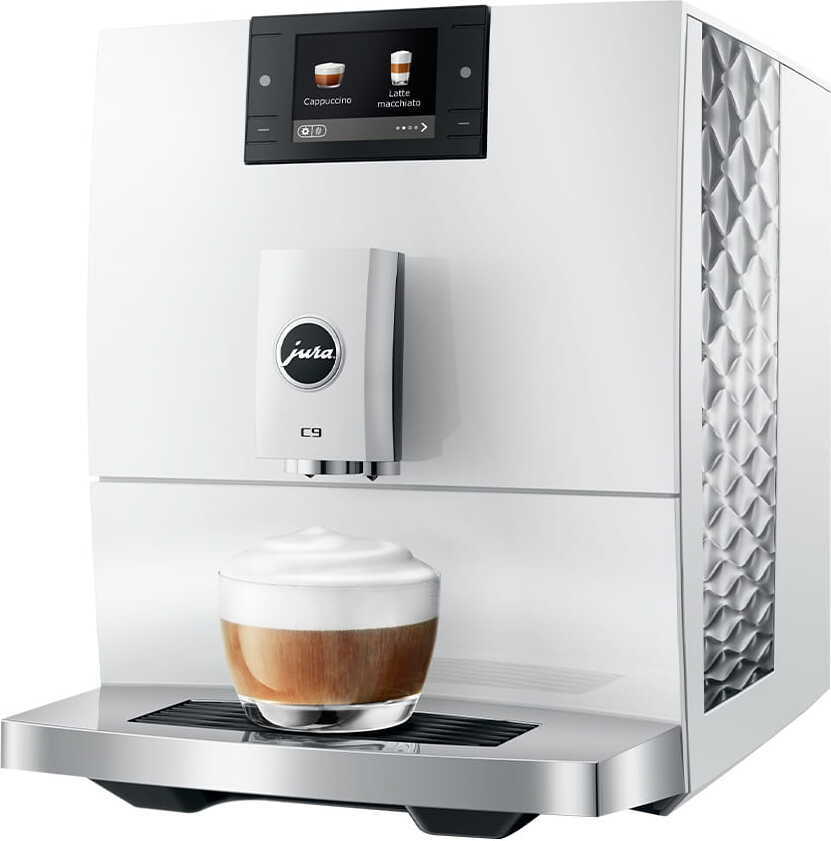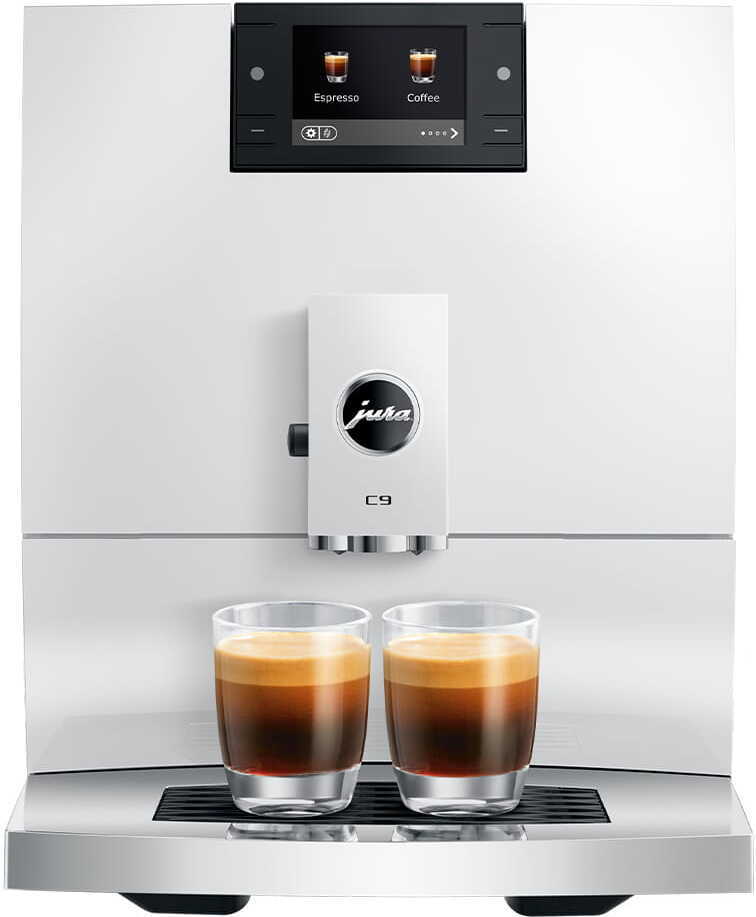 Kompaktisti muotoiltu C9 perustuu designfilosofialtaan JURAn premium-luokan koneisiin. Aaltomaiset yksityiskohdat, kromattu kuppiritilä ja harmonisesti sulautettu 2,8″ värinäyttö tekevät C9:stä keittiön tyylikkään katseenvangitsijan.