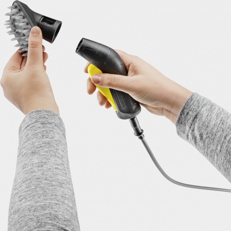 Ei enää kuraisia tassuja ja sottaista turkkia – lisävarusteena saatavana lemmikinpesuharja kaikkiin OC 3 -laitteisiin puhdistaa nopeasti, perusteellisesti ja hellävaraisesti. Se on ihanteellinen käytettäväksi koiran ulkoilun jälkeen huonossa säässä, ennen auton kyytiin nousemista tai kotiin paluuta. Olipa kyse sitten vain lemmikin kuraisista tassuista tai koko turkin puhdistamisesta, joustavat silikoninystyt tekevät harjasta paitsi mukavan lemmikillesi myös poistavat epäpuhtaudet erityisen tehokkaasti. Harja kiinnitetään suoraan matalapainepesurin pesukahvaan. Kun painat liipaisinta, vesi virtaa harjan läpi. Hellävaraisen alhaisen paineen suihkun (verrattavissa hanasta tulevaan suihkuun) ja nystyjen mekaanisen vaikutuksen yhdistelmä tarjoaa erinomaisen puhdistustehon. Vettä käytetään erittäin säästeliäästi, mikä suojaa akkua ja mahdollistaa riittävän pitkän käyttöajan. Lemmikkiharja on yhteensopiva kaikkien kannettavien OC 3 -matalapainepesureiden kanssa.
