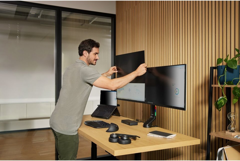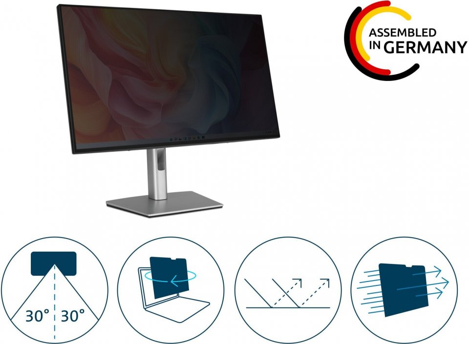 Noin 30 asteen katselukulma pitää näytön sisällön näkyvissä vain suoraan edestä katsottuna. Sivulta katsottuna kuva tummuu selvästi, mikä ehkäisee ohikulkijoiden mahdollisuutta nähdä luottamuksellisia tietoja. Tämä lisää yksityisyyttä avotoimistoissa, vastaanottotiloissa ja muissa julkisissa ympäristöissä.