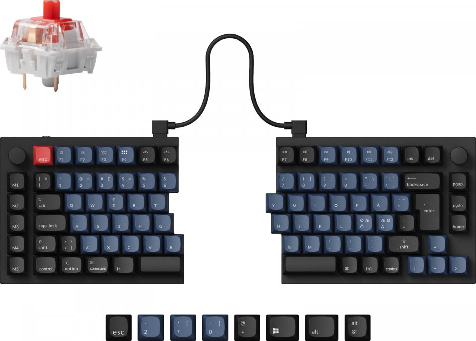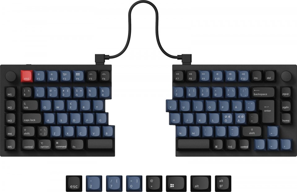 Jaettu muotoilu Jaettavan ulkoasun ansiosta Q11:n kummankin puolen voi asettaa sinne, missä se tuntuu järkevimmältä ja ergonomisimmalta. Sitä voi käyttää myös jakamattomana näppäimistönä yhdistämällä molemmat puoliskot siltajohdolla.
