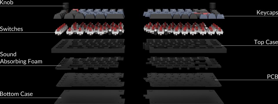 Piirilevyyn ruuvattavat stabilisaattorit Ruuvattava rakenne lisää vakautta tehden muutoksista ja päivityksistä helppoa. Tarkempi suunnittelu tekee hopeoiduista stabilisaattoreista vakaampia ja vähemmän huojuvia. Isojen näppäinten (välilyönti, vaihto, enter, takaisin) kirjoituskokemus on vakaampi ja sujuvampi.