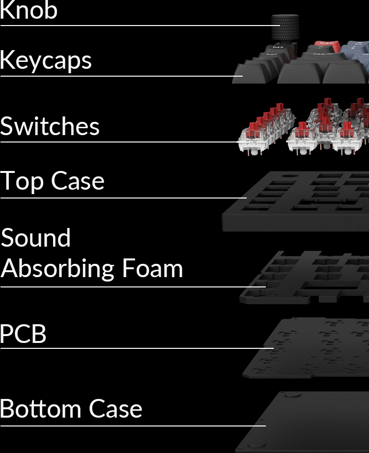 Kokoa jokainen osa itse Täysin muokattavissa olevan näppäimistön jokainen komponentti on suunniteltu helposti koottavaksi. Voit mukauttaa ja säätää jokaista komponenttia haluamallasi tavalla.