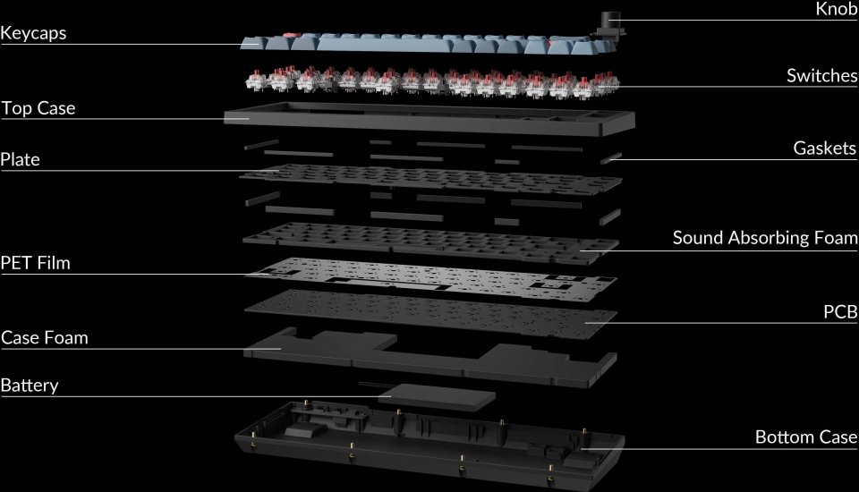Ruuvattavat stabilisaattorit ja tiivistekiinnitys Ruuvattavat stabilisaattorit ovat vakaampia ja vähemmän huojuvia, jonka huomaa erityisesti isoissa näppäimissä (välilyönti, vaihto, enter, takaisin). Keychron V2 Max tukee myös kolmansien osapuolien stabilisaattoreita. Gasket mount -tiivistekiinnitys on suunniteltu luomaan “leijuva” kiinnitys kytkimille, mikä mahdollistaa joustavamman ja pehmustetumman kirjoituskokemuksen.