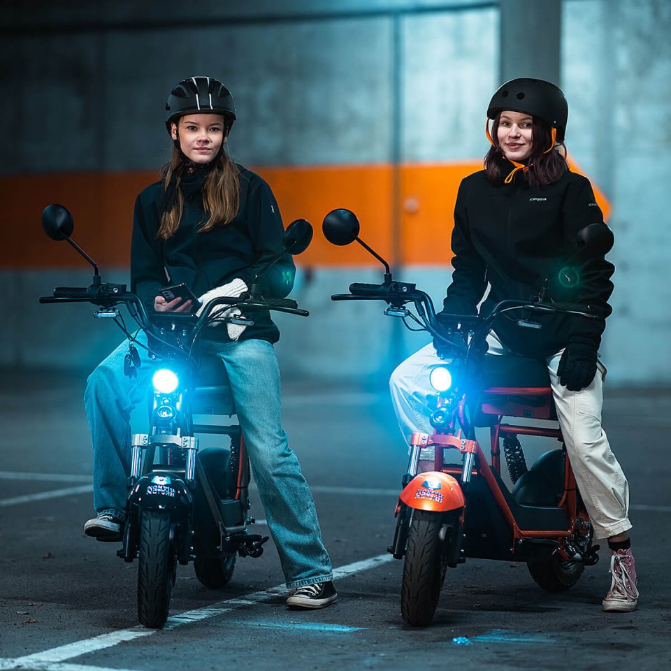• Täyssähköinen mopo, rekisteröidään 45 km/h nopeuteen