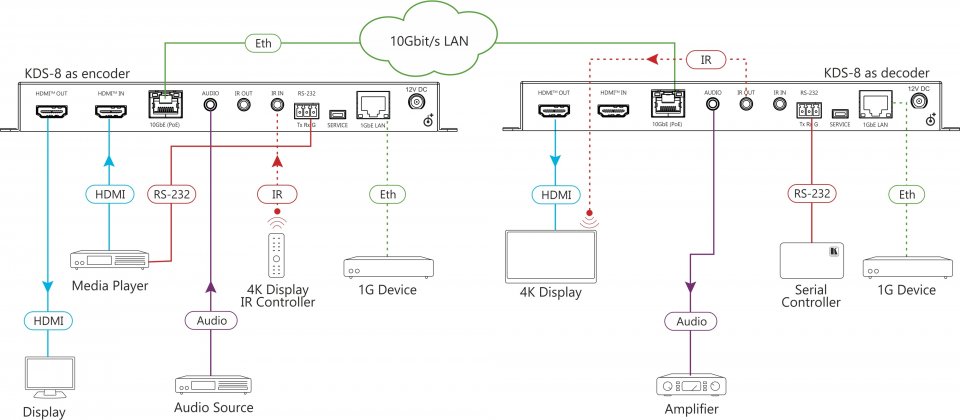 KDS-8 on edistyksellinen ja viiveetön 4K@60Hz (4:4:4) -videostriimauksen lähetin/vastaanotin, joka on tarkoitettu suoratoistoon Ethernetin kautta kuparikaapelilla.