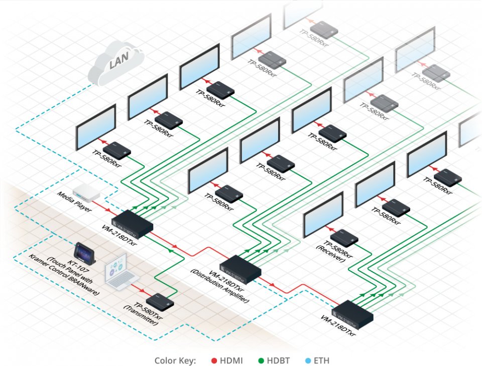 TP−580Rxr on HDBaseT 1.0 teknologiaan perustuva vastaanotin, jolla voi siirtää yhdellä CAT-kaapelilla 4K@60 4:2:0 -videosignaalia, RS-232- ja IR-signaaleja. Se laajentaa videosignaalit jopa 100 metrin päähän 4K@60Hz (4:2:0) 24bpp-videoresoluutiolla ja tarjoaa vielä suuremman kantaman pienemmille HD-videoresoluutioille.