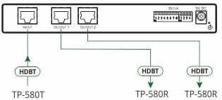 • 1 x HDBT sisään, 2 x HDBT ulos
