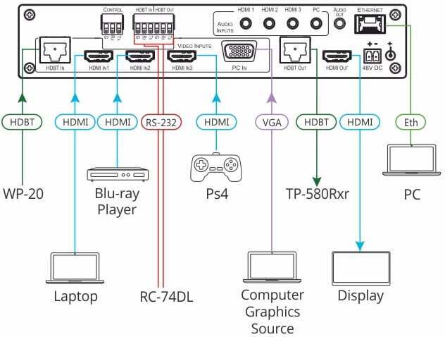 • Ulostulot: 1 x HDMI, 1 x HDBT (RJ45), 1 x 3.5 mm mini jack