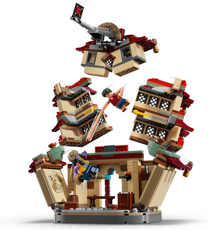 Rakennussetti sisältää Luffy-minihahmon käsivarsien pidennysosineen sekä Namin, Usoppin, Arlongin ja Chun minihahmot. Tornitemppelin voi romauttaa taistelujen tiimellyksessä napauttamalla sitä kevyesti yläosasta. Myös ampumaradalla on hauskoja maalitauluja, joita kohti voi tähdätä nuppipyssyillä. Häijyn Arlongin voi laittaa haihyökkäysrakennelman sisällä olevalle valtaistuimelle. Chu voi puolestaan piipahtaa kojulla hörppäämässä virkistävän juoman. Ja metsän siimeksestä löytyy tuttuakin tutumpi ketsuppipullo. Setti sisältää myös nuppipyssyjä ja tarvikkeita, kuten 3 ”Wanted”-kylttiä. Elämys saa hauskoja digitaalisia ulottuvuuksia intuitiivisessa LEGO Builder sovelluksessa, jonka työkaluilla rakentajat voivat zoomata ja kiertää malleja 3D-näkymässä sekä seurata edistymistä. Setissä on 926 osaa.