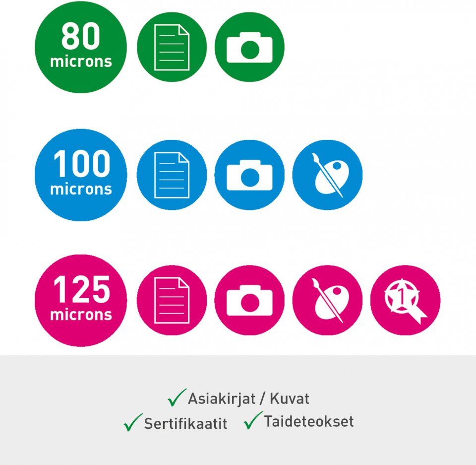 • Mukana tulee 5 kpl A4-taskuja (80 mikronia).