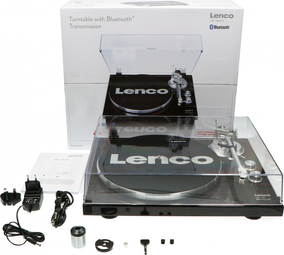 Hihnavetoinen Lenco LBT-188 -levysoitin kahdella kierrosnopeudella (33, 45 RPM). Soittimessa on Audio-Technican AT3600-äänirasia, Bluetooth-yhteys ja USB-liitäntä, jonka avulla levyt voidaan muuttaa digitaaliseen muotoon. Sisäänrakennettu on/off-kytkimellinen esivahvistin.