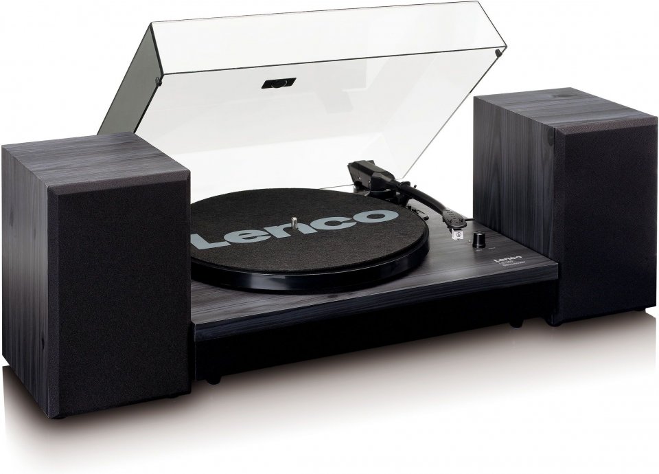 Lenco LS-300 -vinyylilevysoitin ja kaiuttimet, musta