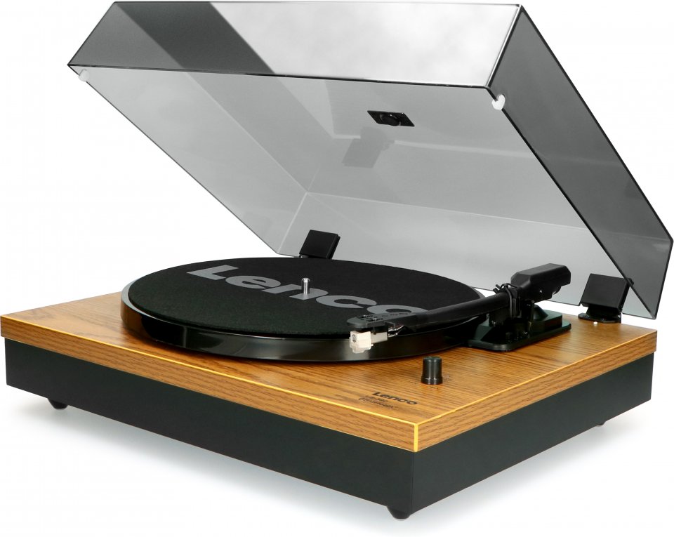Lenco LS-300 -vinyylilevysoitin ja kaiuttimet, puunvärinen