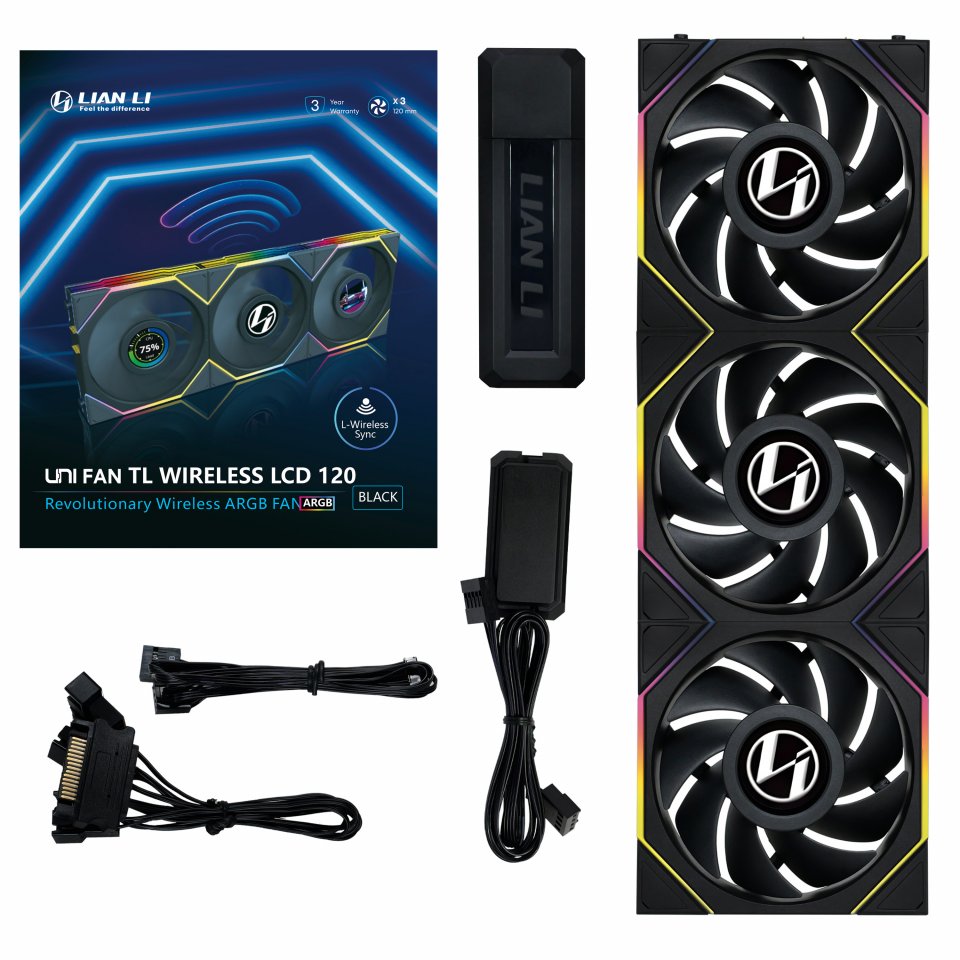 UNI FAN TL Wireless LCD käyttää L-Wireless Sync -tekniikkaa, joka mahdollistaa tuulettimien ja valaistuksen hallinnan ilman perinteisiä johdotuksia. Tuuletin saa virran 4-pinnisestä liittimestä, ja LCD-näytön asetukset hoituvat USB 2.0 -kaapelilla. Langaton vastaanotin helpottaa järjestelmän hallintaa ja mahdollistaa jopa 20 tuulettimen ohjauksen yhdellä emolevyllä.