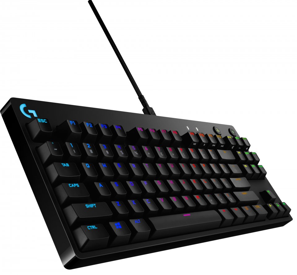 Mekaaninen Logitech G Pro -pelinäppäimistö on suunniteltu e-urheilijoiden kanssa e-urheilijoita varten. Se on pienikokoinen eikä siinä ole lainkaan numeronäppäimistöä, joten pöydällä on hyvin tilaa hiiren liikkeille alhaisilla herkkyysasetuksilla. Ammattilaistasoiset Clicky-kytkimet tuottavat kuuluvan naksahduksen ja sormenpäissä tuntuvan selkeän palautteen ja painalluksen. Ohjelmoitavien LIGHTSYNC RGB -valojen ja sisäisen muistin ansiosta voit mukauttaa ja tallentaa valaistuskuvion turnauspelejä varten. Näppäimistön kolmitasoinen kulman säätö lisää mukavuutta, ja kumijalat takaavat vakauden vauhdikkaankin pelin aikana. Johdon voi irrottaa kuljetuksen ajaksi. Pelaa voitosta.