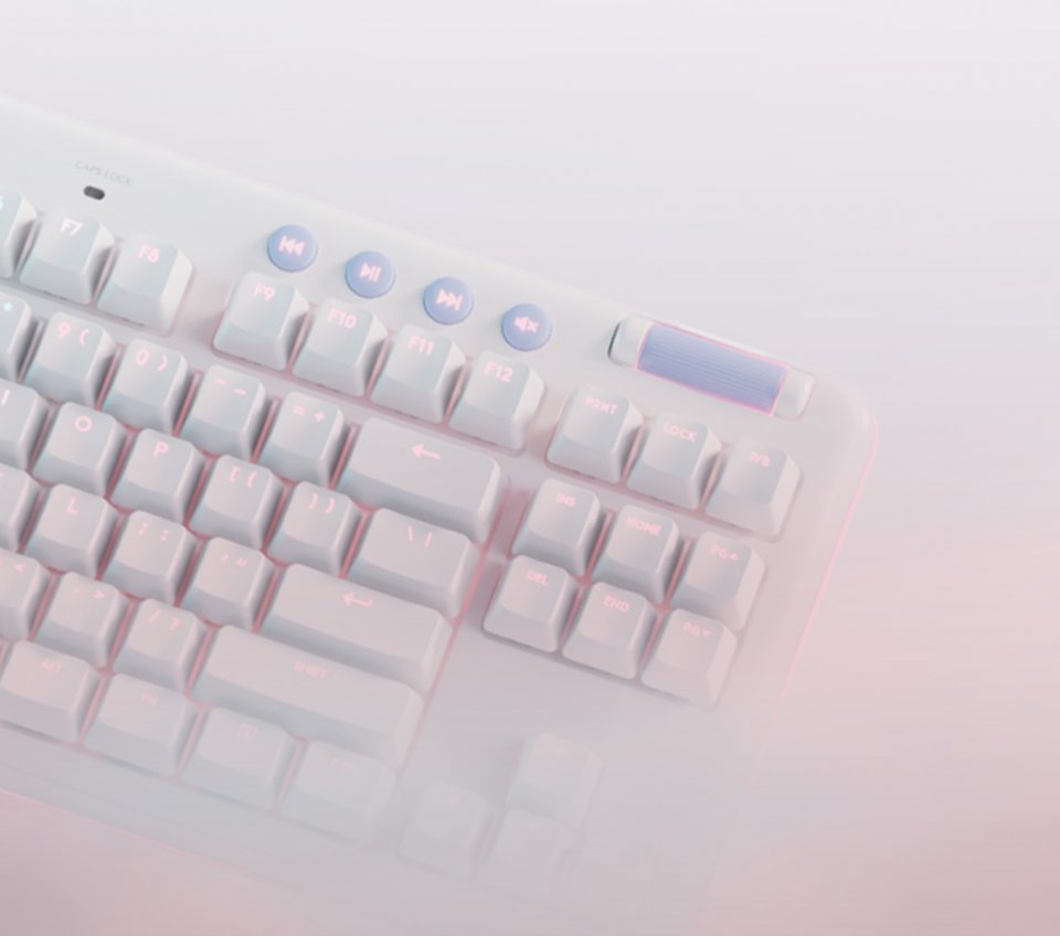 Aurora-valikoimaan kuuluva pieni ja mukava G715-pelinäppäimistö on hillitty mutta suorituskykyinen laite, jonka avulla voit ilmaista itseäsi ja pelata omalla tavallasi. Sen valkoinen ulkoasu ja pilvenpehmeä kämmentuki liidättävät sinut unelmiisi. Kompaktin numeronäppäimistöttömän koon ja säädettävän korkeuden ansiosta pitkätkin pelisessiot tuntuvat mukavilta.