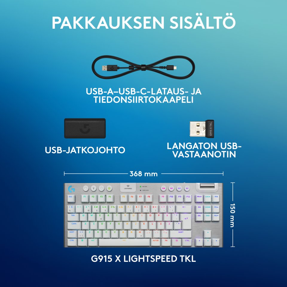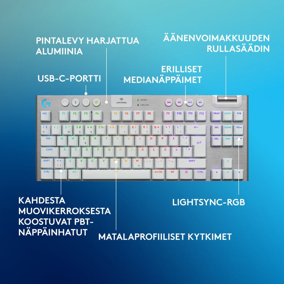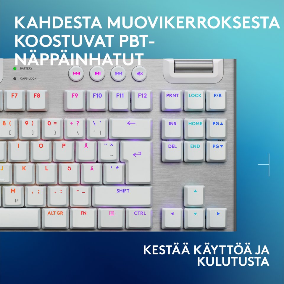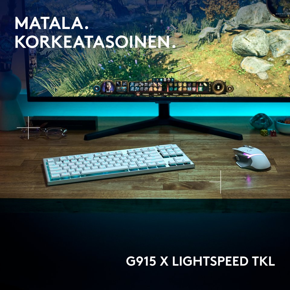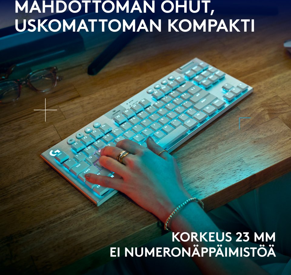 Logitech G915 X LIGHTSPEED TKL -matalaprofiilinen pelinäppäimistö, Tactile-kytkimet, valkoinen