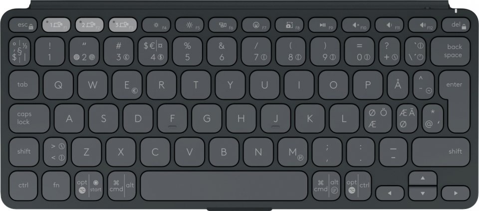 Yhteispohjoismainen näppäinasettelu – näppäimistöstä löytyy å,ö,ä-kirjaimet. Tuotekuva on viitteellinen.