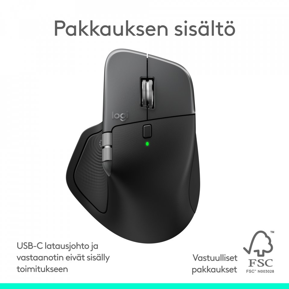• Myyntipakkauksen sisältö: Logitech MX Master 4 -hiiri, käyttäjän dokumentaatio