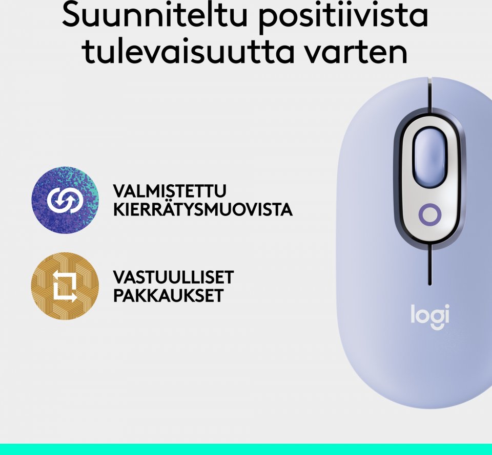 [1] POP Mouse – hiiren muovisisältö: 37– 68 % kierrätysmuovia väristä riippuen, painopiirilevyn ja pakkauksen muovi pois luettuna.